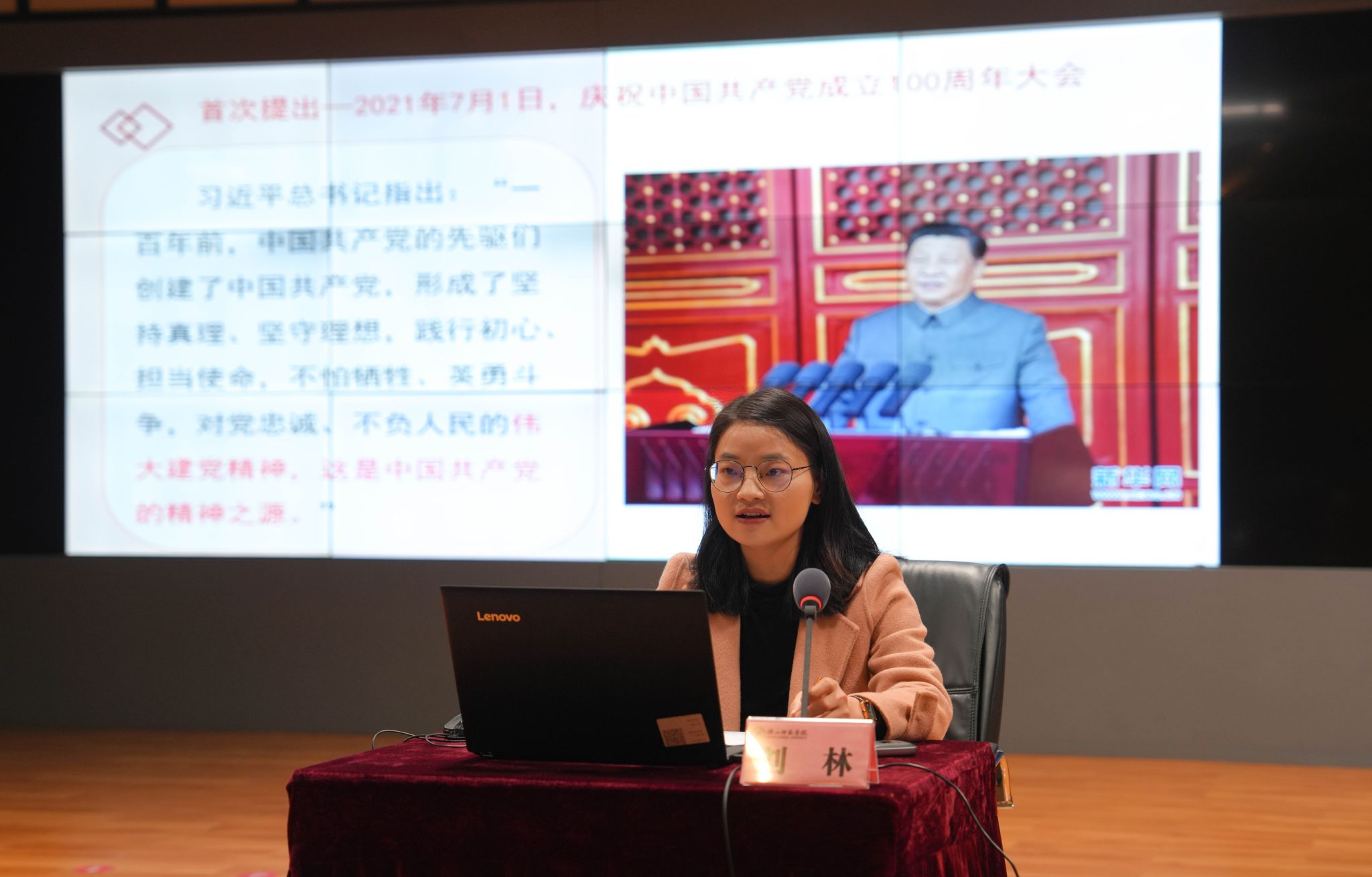 本网讯(文/代青茹 图/杨爽)为深入学习贯彻党的二十大精神,大力弘扬以伟大建党精神为源头的中国共产党人精神谱系,为全面建设社会主义现代化国家、全面推进中华民族伟大复兴提供强大精神支撑,11月14日机关党委在旷怡楼学术报告厅开展“弘扬以伟大建党精神为源头的中国共产党人精神谱系”主题宣讲,本次宣讲由马克思主义学院刘林老师担任主讲人,机关党委书记刘馨主持。