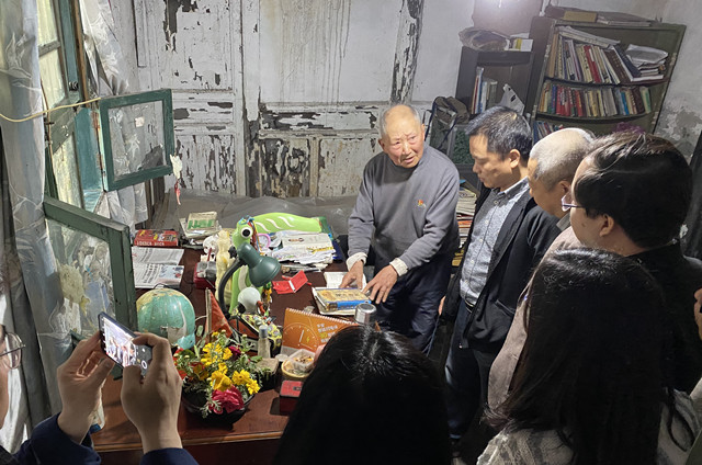 正如党支部书记邹大勇同志所说的,“王大康同志身上有一种数十年如一日的自律精神和活到老学到老的求知热情,这是非常难能可贵的。”王爷爷的住处虽然略显简陋,但收拾得非常整洁。在他每天坚持阅读、学习的书桌上,我们看到了好几个笔记本,密密麻麻地记录着他每天的生活和学习的情况。王爷爷告诉大家,希望在自己有生之年,读完《二十四史》和《资治通鉴》。除了阅读书报,他每天还要学习新概念英语、练习手风琴或者钢琴、骑行、练字,并且始终保持了记日记的习惯。