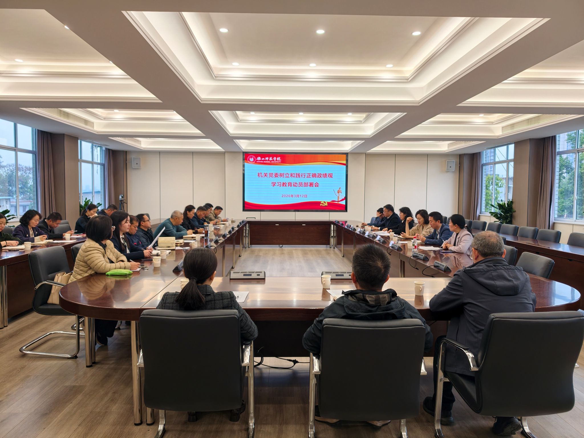 会议传达学习学校树立和践行正确政绩观学习教育动员部署会精神,解读机关党委学习教育实施方案,明确此次学习教育于2026年春节后启动、7月底基本结束,以处级领导班子和各部门“一把手”为重点,紧扣“立党为公、为民造福、科学决策、真抓实干”总要求,一体推进学习研讨、查摆问题、整改整治、建章立制、开门教育五项重点工作。