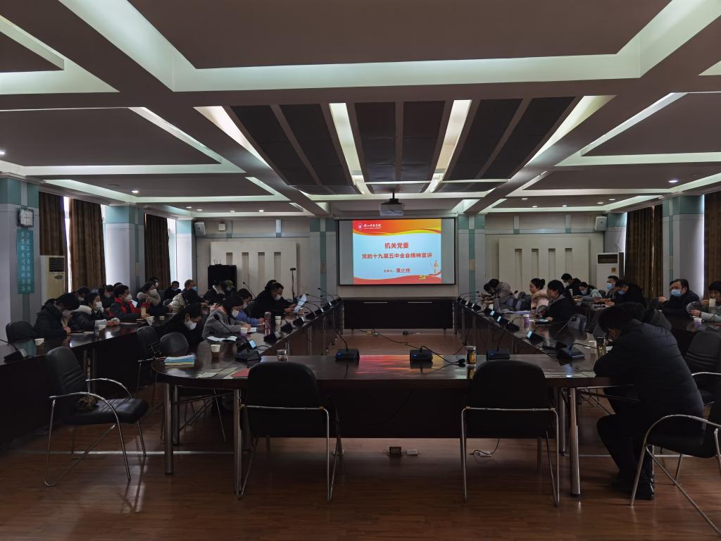 12月10日下午,学习机关党委组织了“学习宣传贯彻党的十九届五中全会精神”宣讲会,邀请学校马克思主义学院教师董小玲作了专题辅导报告,国有资产管理处党支部参加学习。机关党委书记郭晓黎主持会议。