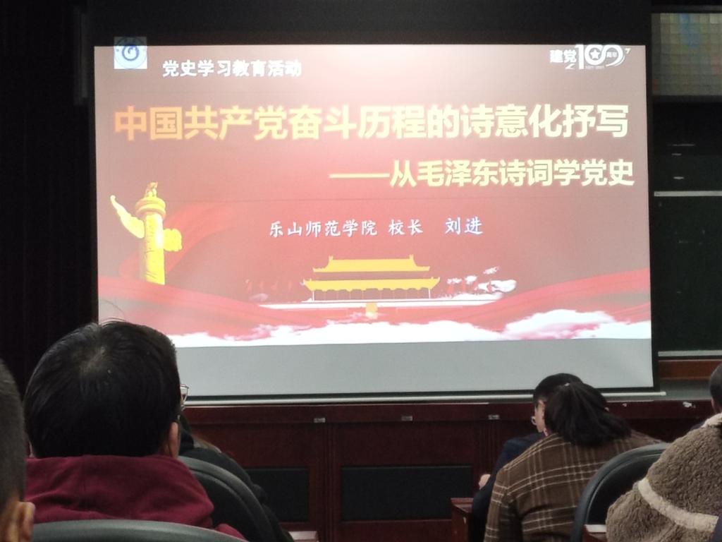 为进一步推动党史学习教育不断向广度拓展向深度推进,赓续好红色基因,传承好革命精神,10月28日,校党委副书记、校长刘进在弘毅楼413室进行了题为“中国共产党奋斗历程的诗意化书写——从毛泽东诗词学党史”的党课辅导,为宣传部统战部党支部、审计处党支部、发展规划处党支部等支部党员生动解读了伟人诗词里的辉煌党史。