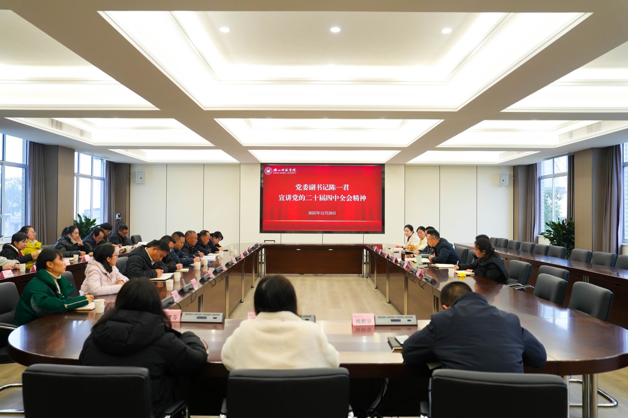 12月29日,学校在弘毅楼第一会议室召开党的二十届四中全会精神宣讲会。党委副书记陈一君面向党委组织部、党委宣传部、国际交流合作处等职能部门全体成员作专题辅导报告。