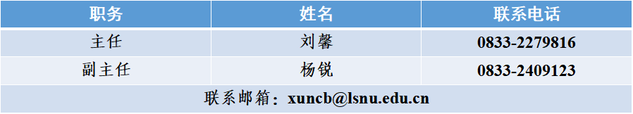 乐山师范学院巡察工作办公室(机关党委) 电话:(0833)2271604 邮箱:xuncb@lsnu.edu.cn地址:四川省乐山市市中区滨河路778号乐山师范学院弘毅楼216 邮编:614000